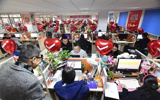 2018On the eve of the Double 11 Shopping Festival, what are the employees of e-commerce platforms busy doing? On the evening of November 10, the reporter of Chutian Metropolis Daily came to the Headquarters of BESTORE, a local e-commerce platform, and saw that hundreds of employees in the Double 11 uniform of red “robes” were busy.
